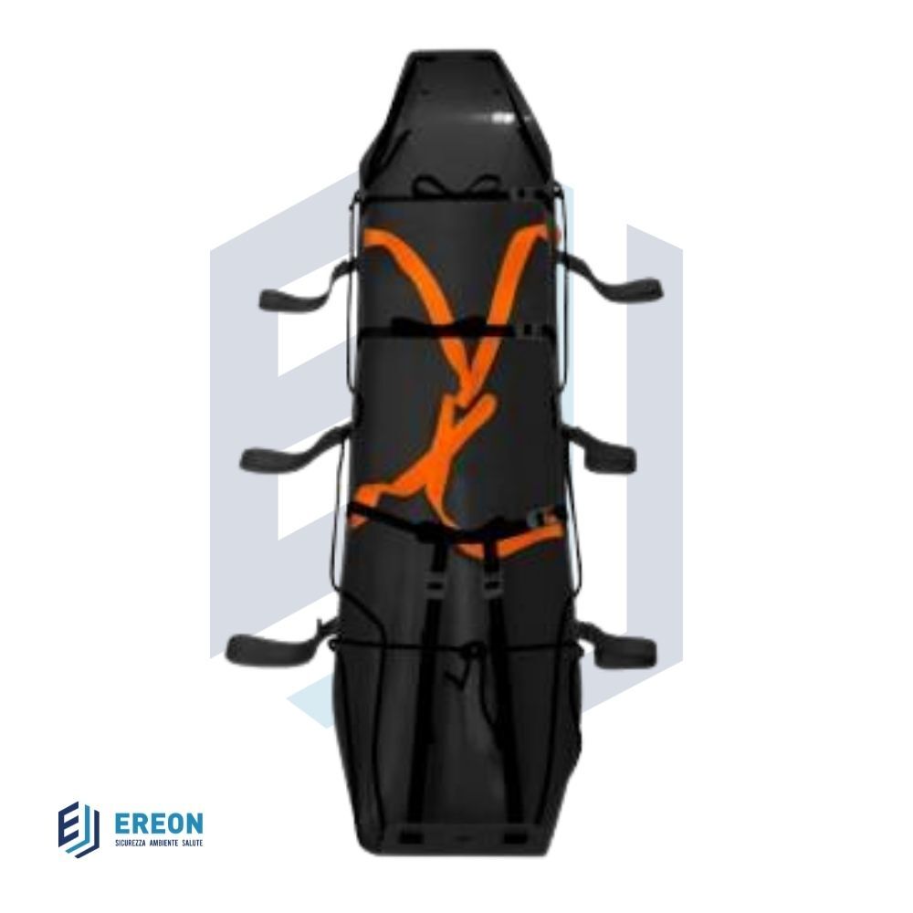 Dispositivo medico arrotolabile studiato per il soccorso in ambienti confinati; è particolarmente indicato per l’evacuazione degli infortunati da luoghi angusti e con passaggi stretti o complicati.